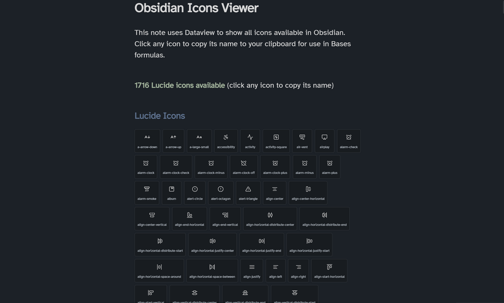 Icons browser: Obsidian Icons Viewer for fast icon selection in your notes.