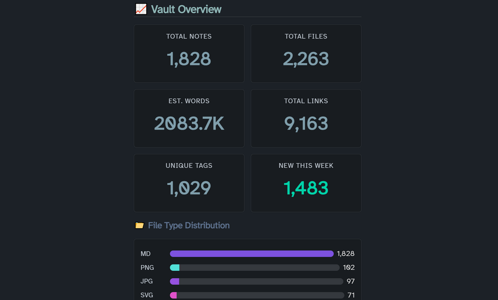 It has sample animated charts and daily notes with animated daily dashboards for you to see what Dataview is capable of and get ideas for your own vault.