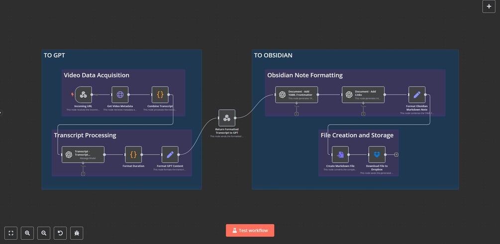 The complete workflow, ready to import and automate your YouTube transcript processing.