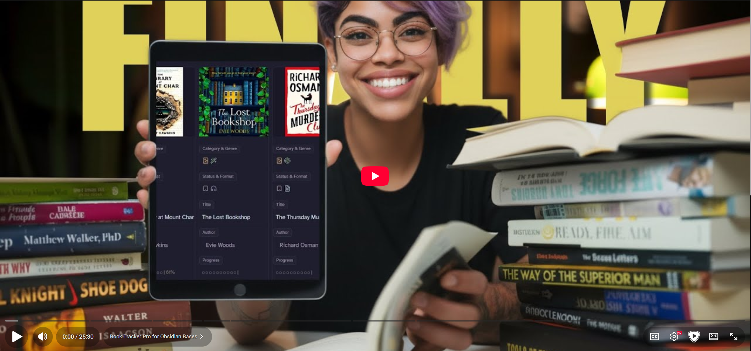 I built the Base I wish existed when Bases came out for Obsidian. Book Tracker Pro is done-for-you, beautiful by default, and gets you tracking your reading in under 15 minutes.