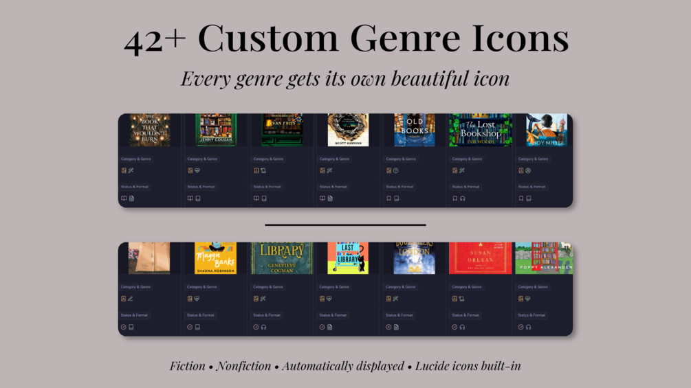→ 42+ genre icons for Fiction and Nonfiction
