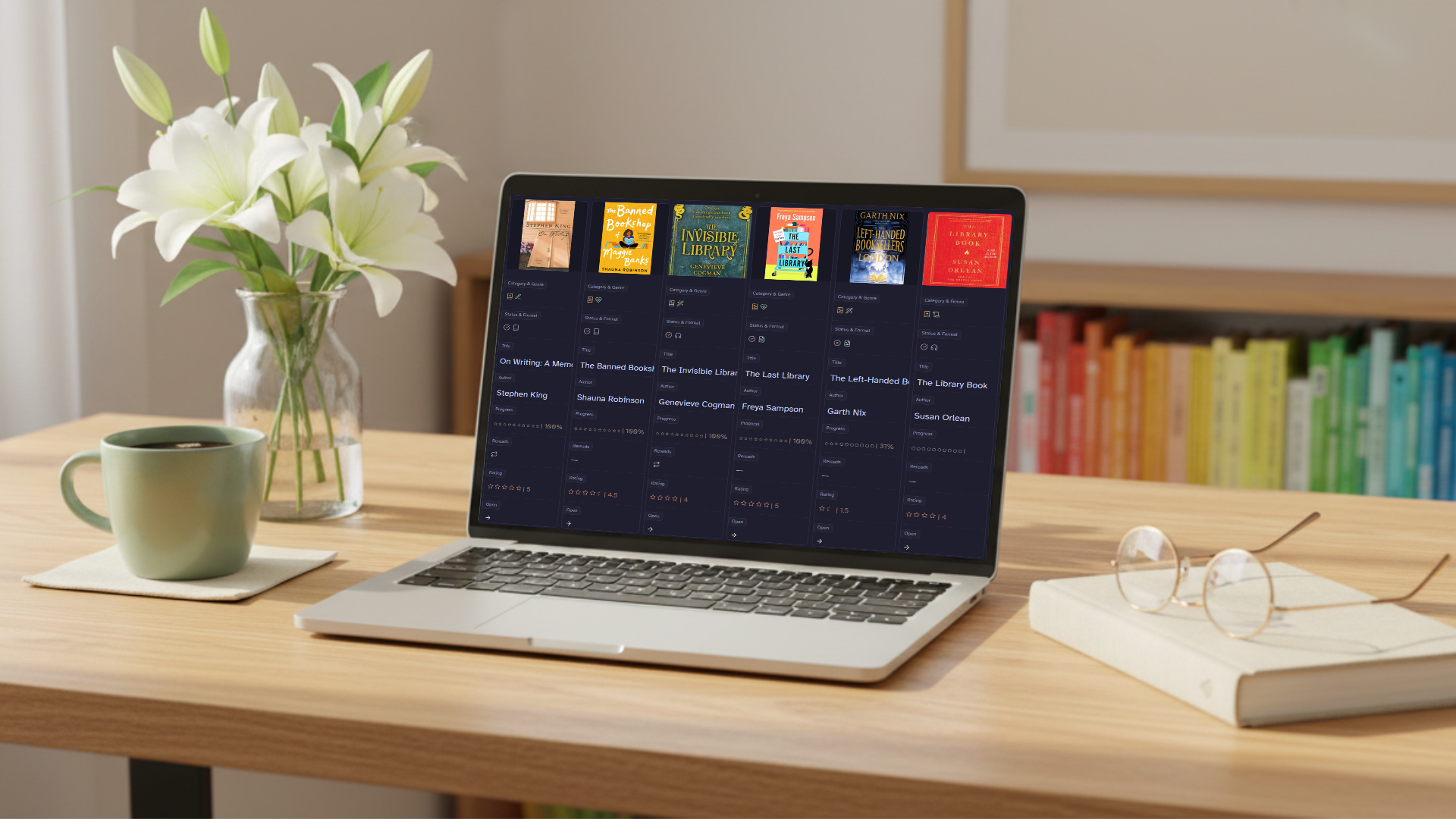 ◉ Track reading progress without opening a spreadsheet